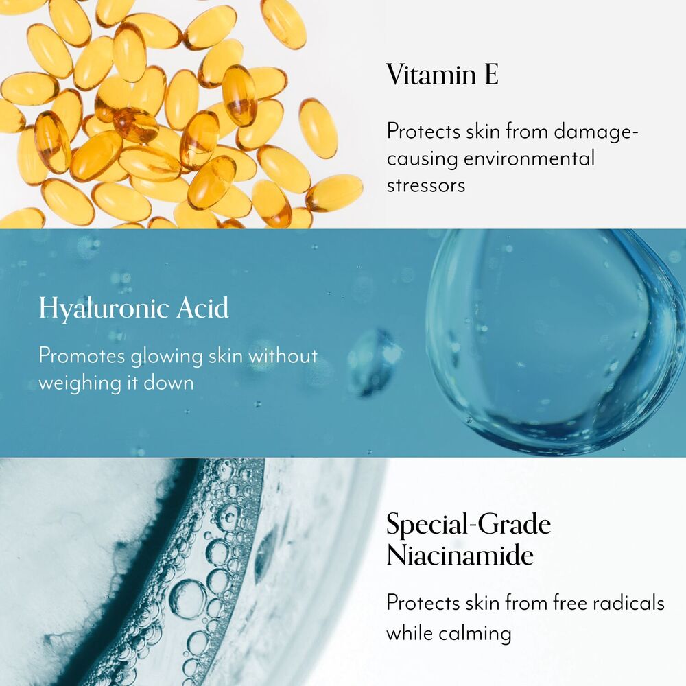 This multi-action, power hyaluronic serum contains special grade niacinamide (a potent antioxidant also known as vitamin B3), hyaluronic acid and vitamin E to replenish and defend skin for the ultimate everyday glow.
